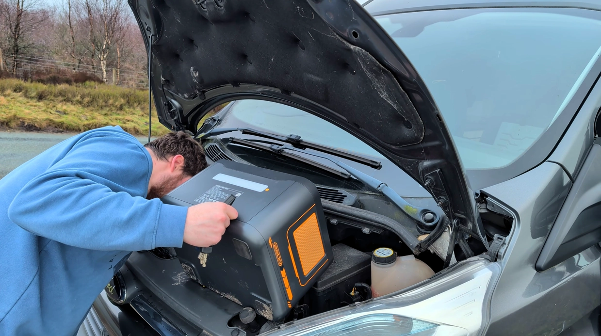 After draining the unit to 22%, it was time to test the headline feature. My van battery was dead. I plugged the jump leads into the dedicated port on the VTOMAN.